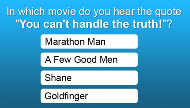 Look forward to questions like "In which movie do you hear the quote : "Bond. James Bond."?" and "In which movie do you hear the quote : "A census taker once tried to test me. I ate h.."