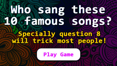 6/10 is what people on average are scoring in this Songs quiz so far. Are you ready to answer questions like "Who sang this song : "Little Red Corvette" (Popular in 1984)?" and "Who sang this song : "You May Be Right" (Popular in 1981)?"