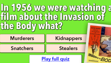 In this fun 1950s Movies quiz we're going to ask questions like "In 1956 we were watching a film about the Invasion of the Body what?" and "What was Annie's surname in Annie Get Your Gun?".