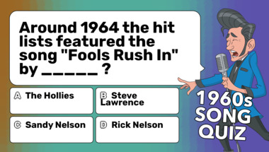 Look forward to questions like "Around 1962 the hit lists featured the song "(Marie's the Name Of) His Latest Flame" .." and "Around 1964 the hit lists featured the song "Fools Rush In" by _____ ?"
