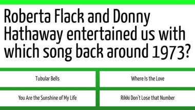 In this fun trivia quiz we're going to ask questions like "Gladys Knight and The Pips entertained us with which song back around 1974?" and "Tom Jones entertained us with which song back around 1970?".