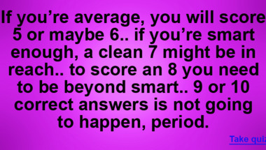 If you can answer "How many minutes in two and a half hours?" and maybe even "Arnold Schwarzenegger hails from which country?" there is a good chance that you're going to beat the average score of 6/10 in this trivia quiz
