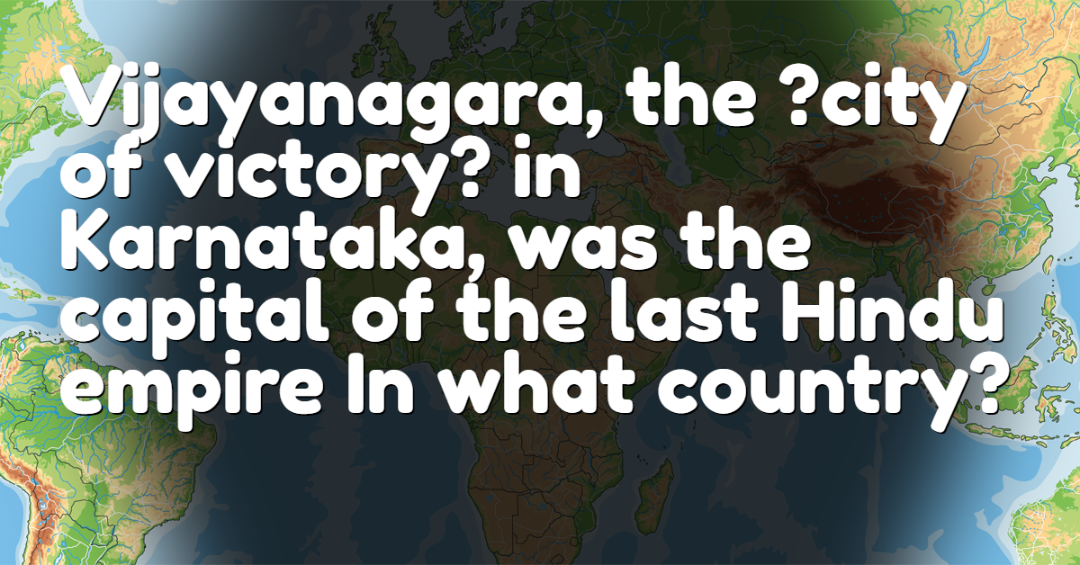 Vijayanagara, the ?city of victory? in Karnataka, was the capital of the last Hindu empire In what country?