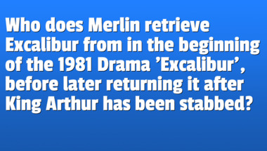 Who does Merlin retrieve Excalibur from in the beginning of the 1981 Drama 'Excalibur', before later returning it after King Arthur has been stabbed?