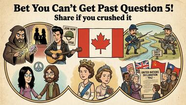 7/10 is the score to beat in this History 29-03-2025 quiz to put yourself over the average quiz taker. But you're probably going to be able to answer questions "What nationality was Yoko Ono, who married John Lennon in 1969?" and "What type of leaf was on the new Canadian flag, unveiled in 1965?" easy!
