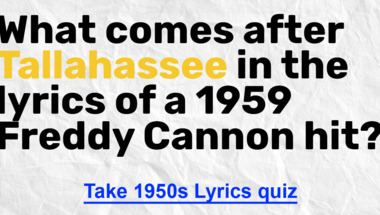 Look forward to questions like "What comes after "Tallahassee" in the lyrics of a 1959 Freddy Cannon hit?" and "Some of the lyrics to "Lisbon Antigua" by Nelson Riddle are sung in which language?"