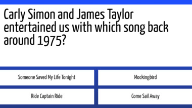 4/10 is the score to beat in this trivia quiz to put yourself over the average quiz taker. But you're probably going to be able to answer questions "Paul Simon entertained us with which song back around 1973?" and "The Carpenters entertained us with which song back around 1974?" easy!