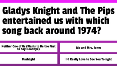 3/10 is what people on average are scoring in this trivia quiz so far. Are you ready to answer questions like "Sammy Davis Jr. entertained us with which song back around 1970?" and "The Four Tops entertained us with which song back around 1974?"
