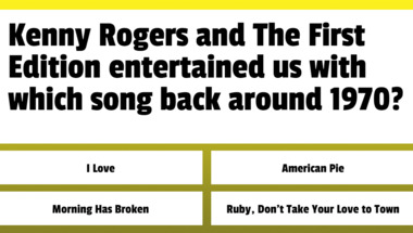 If you can answer "Tom Jones entertained us with which song back around 1972?" and maybe even "Kenny Rogers and The First Edition entertained us with which song back around 1970?" there is a good chance that you're going to beat the average score of 4/10 in this trivia quiz