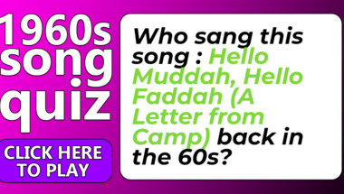 4/10 is the score to beat in this 1960s Songs quiz to put yourself over the average quiz taker. But you're probably going to be able to answer questions "Who sang this song : "Sherry" back in the 60s?" and "Who sang this song : "Hello Muddah, Hello Faddah (A Letter from Camp)" back in the 60.." easy!