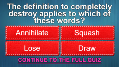 If you can answer "The definition 'to completely destroy' applies to which of these words?" and maybe even "In which modern day country was the Inca civilization formed?" there is a good chance that you're going to beat the average score of 6/10 in this trivia quiz