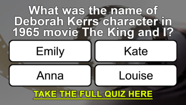In this fun trivia quiz we're going to ask questions like "What was the name of Deborah Kerr's character in 1965 movie 'The King and I'?" and "Peter Ustinov was raised in the UK with parents from which country?".