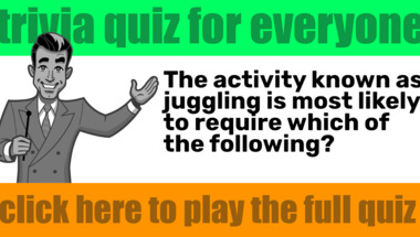 7/10 is the score to beat in this trivia quiz to put yourself over the average quiz taker. But you're probably going to be able to answer questions "What goes in a kangaroo's pouch?" and "The activity known as juggling is most likely to require which of the following?" easy!