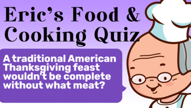 6/10 is what people on average are scoring in this trivia quiz so far. Are you ready to answer questions like "A traditional American Thanksgiving feast wouldn't be complete without what meat?" and "Strudel is an European Jewish dessert of fruit encased in what?"