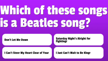 In this fun trivia quiz we're going to ask questions like "Which of these songs is a Beatles song?" and "Which of these songs is a Beatles song?".