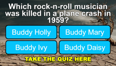 Look forward to questions like "Which rock-n-roll musician was killed in a plane crash in 1959?" and "Which group held the top 5 positions in the record charts in April 1964?"