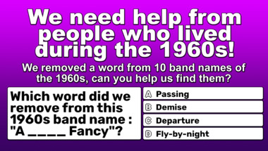 Can you beat the average score of 7/10 in this quite fun 1960s bands with a missing word quiz?