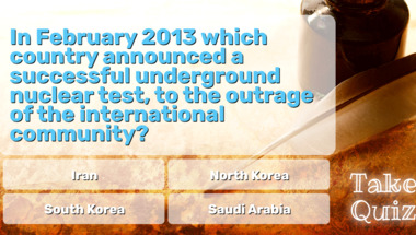 Look forward to questions like "John F. Kennedy engaged which other politician in a televised debate in 1960?" and "In February 2013 which country announced a successful underground nuclear test, to th.."