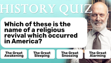 Look forward to questions like "Which of these is the name of a religious revival which occurred in America?" and "What name was given to the tunics worn by people in Ancient Rome?"