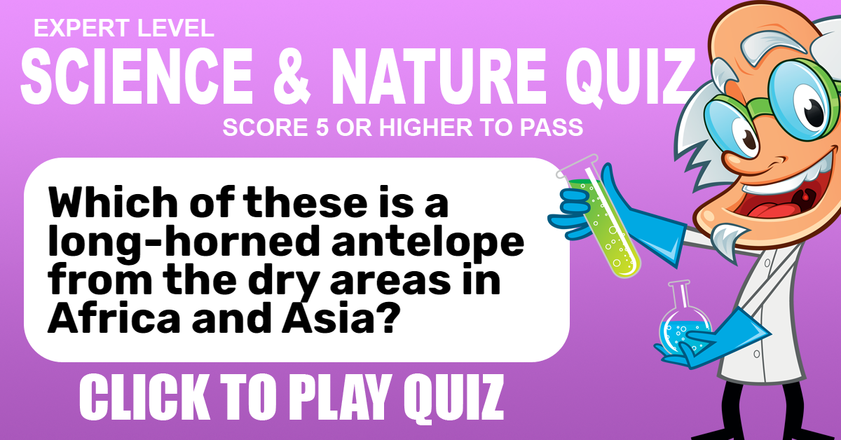 Which of these is a long-horned antelope from the dry areas in Africa and Asia?