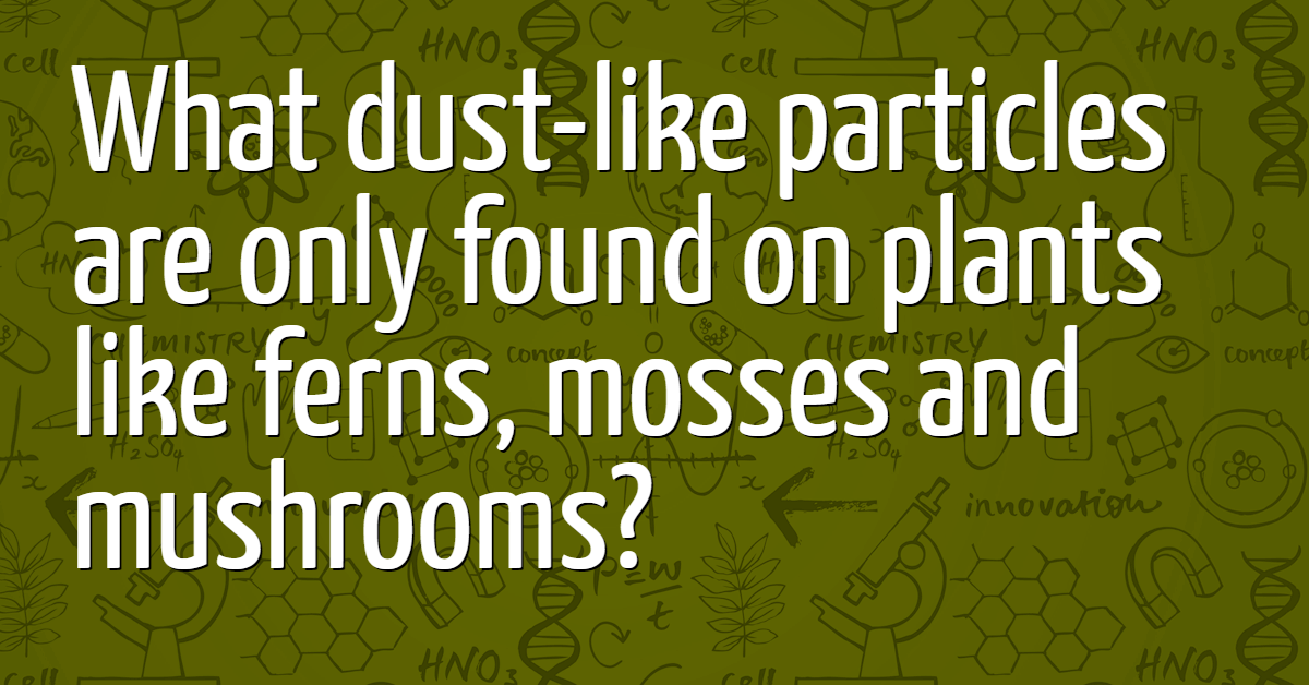 What dust-like particles are only found on plants like ferns, mosses and mushrooms?